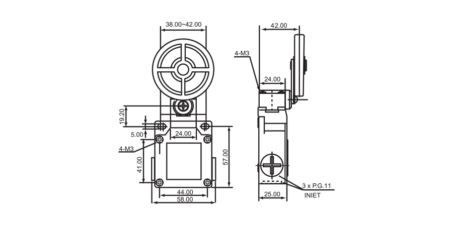 • Contacts: Snap Action 1 NO + 1 NC