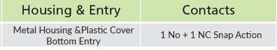• Mechanical life - 1 Million & Electrical life - 0.5 Million