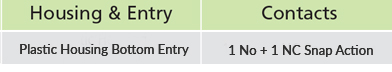 • Mechanical life - 1 Million & Electrical life - 0.5 Million