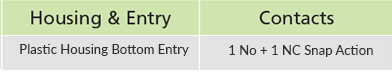 • Mechanical life - 1 Million & Electrical life - 0.5 Million